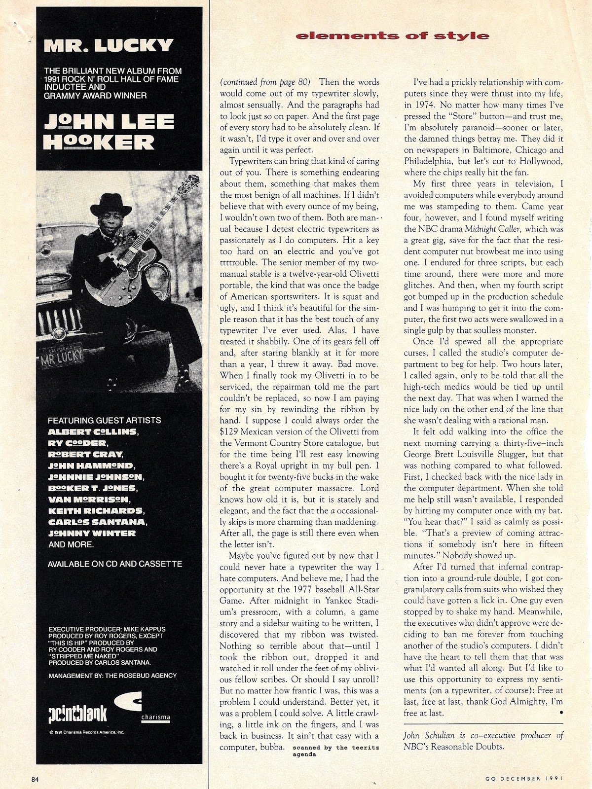 Here are those typewriter articles that I mentioned, courtesy of GQ Magazine. Please don't sue, gang. I had every issue between 1989 and 2012, AND I'm a current digital subscriber. Still prefer the paper version, though, 'cos I'm old-school that way;